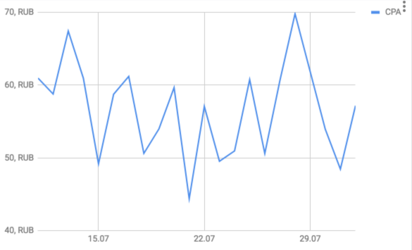 There may also be a situation where you set a specific CPI goal, but installations of the app are 2-3 times more expensive. For example, you set a CPI of 50 rubles (about $1 per install). At the campaign start, actual CPI may be at 100 rubles rate (about $2 per install), and then gradually decrease to 50 rubles over time. If the install price does not decrease in 2-3 days, we recommend removing this campaign. Probably, the creative did not "capture" your target audience, or you need to adjust the targeting.