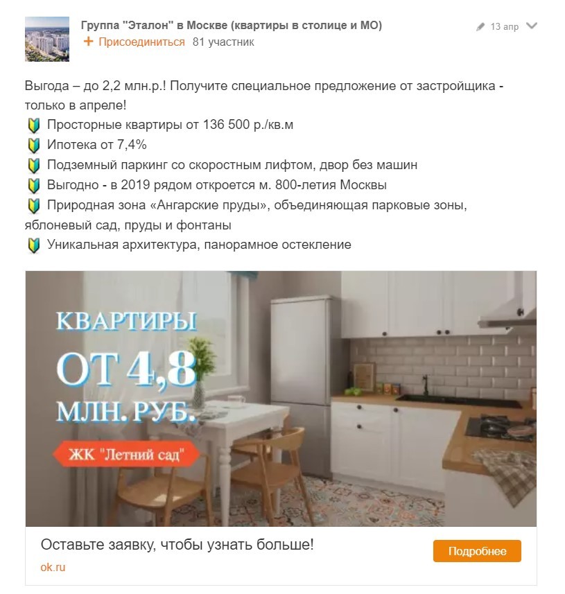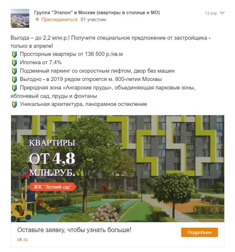 Инструменты- Формат: промопост с Lead Ads в Одноклассниках;