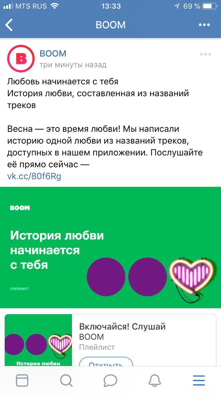 В приложении создан брендированный плейлист МегаФона с лучшими современными песнями о любви. Для абонентов мобильного оператора, выбравших тариф «Включайся! Слушай», в стоимость уже включена цена подписки на музыкальный сервис BOOM. Таким образом, МегаФон даёт возможность каждому создать свою собственную историю любви, собирая плейлисты из любимой музыки.