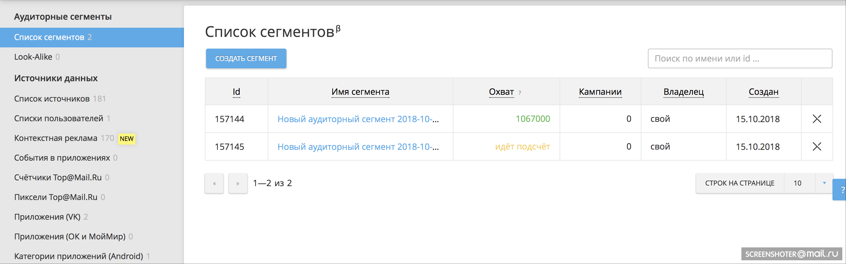 Получить информацию о количестве охваченных пользователей можно в личном кабинете myTarget. Данные доступны во вкладке «Аудитории»