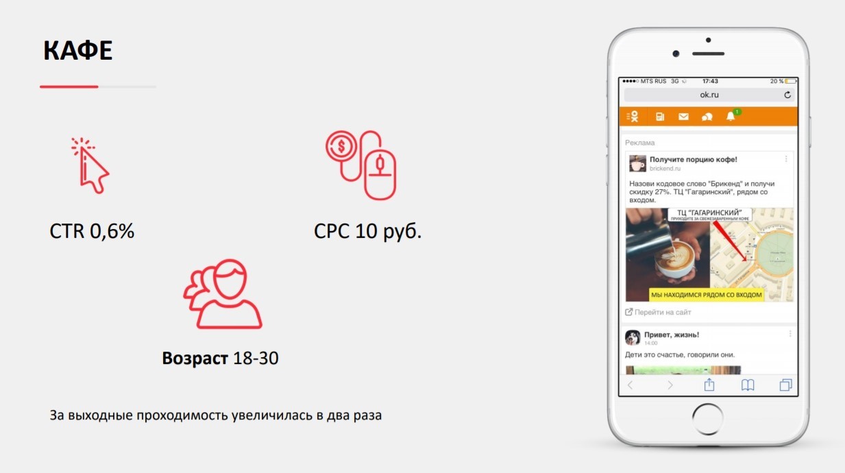 Локальная реклама показывается пользователям, которые находятся в радиусе от 500 м до 10 км от указанной точки на карте. Этот вид рекламы особенно эффективен при продвижении магазинов, кафе и ресторанов, которые находятся поблизости к аудитории.
