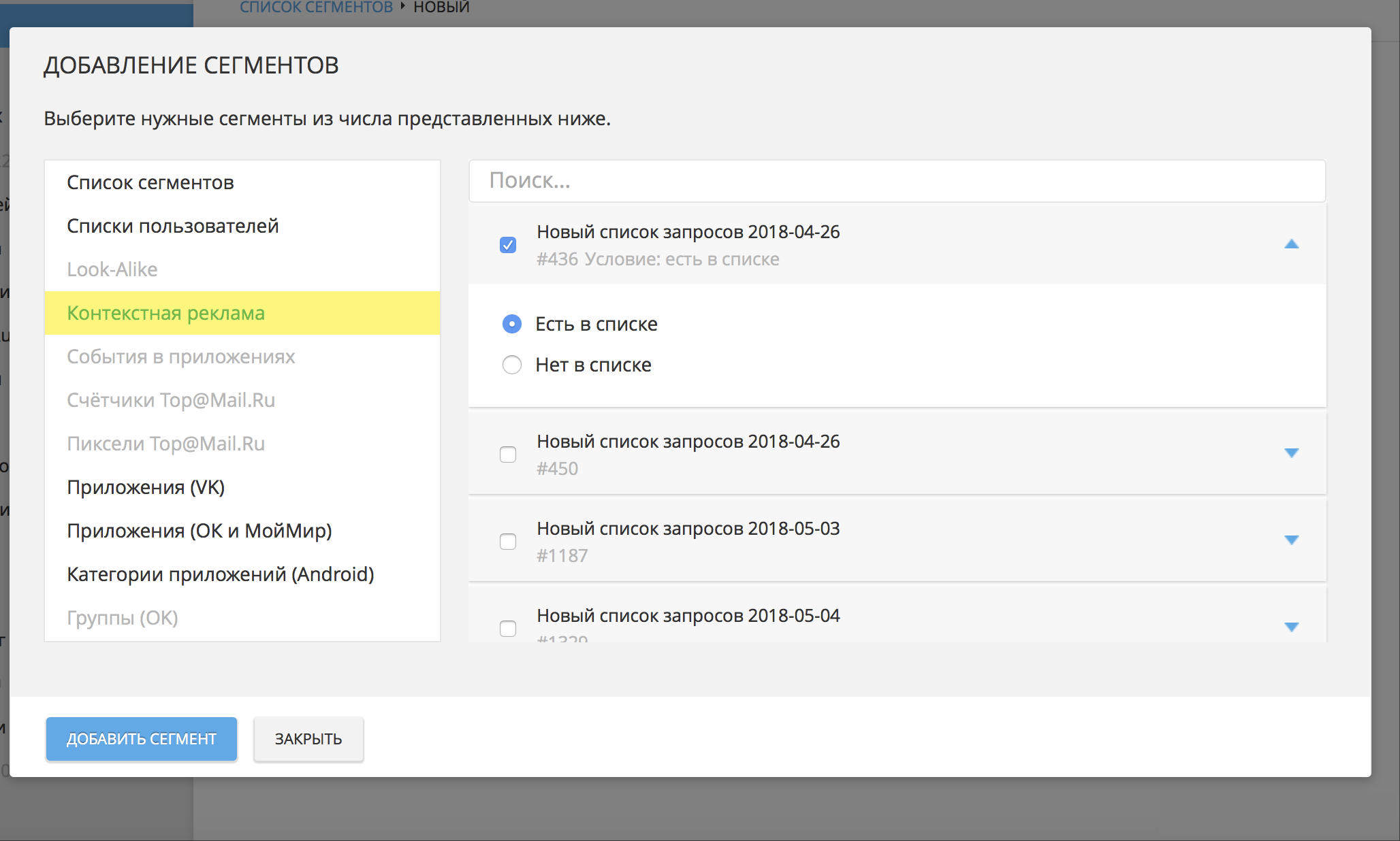 Обратите внимание, редактировать добавленные списки нельзя, можно только заменять.